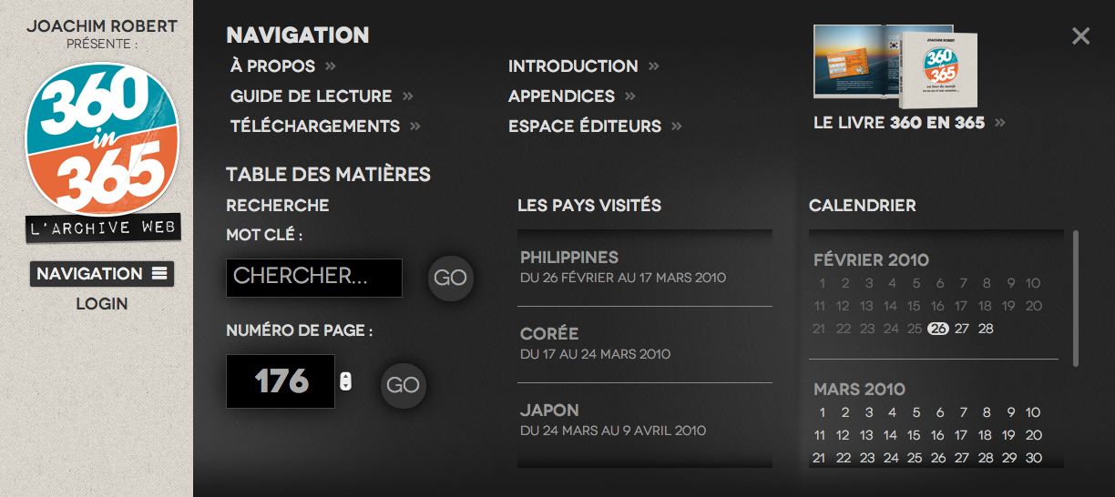 J'ai fait le design et l'intégration de ce site, en HTML5 & CSS3 & jQuery. Il est spécialement optimisé pour accueillir les divers contenus de mon livre de manière complètement.