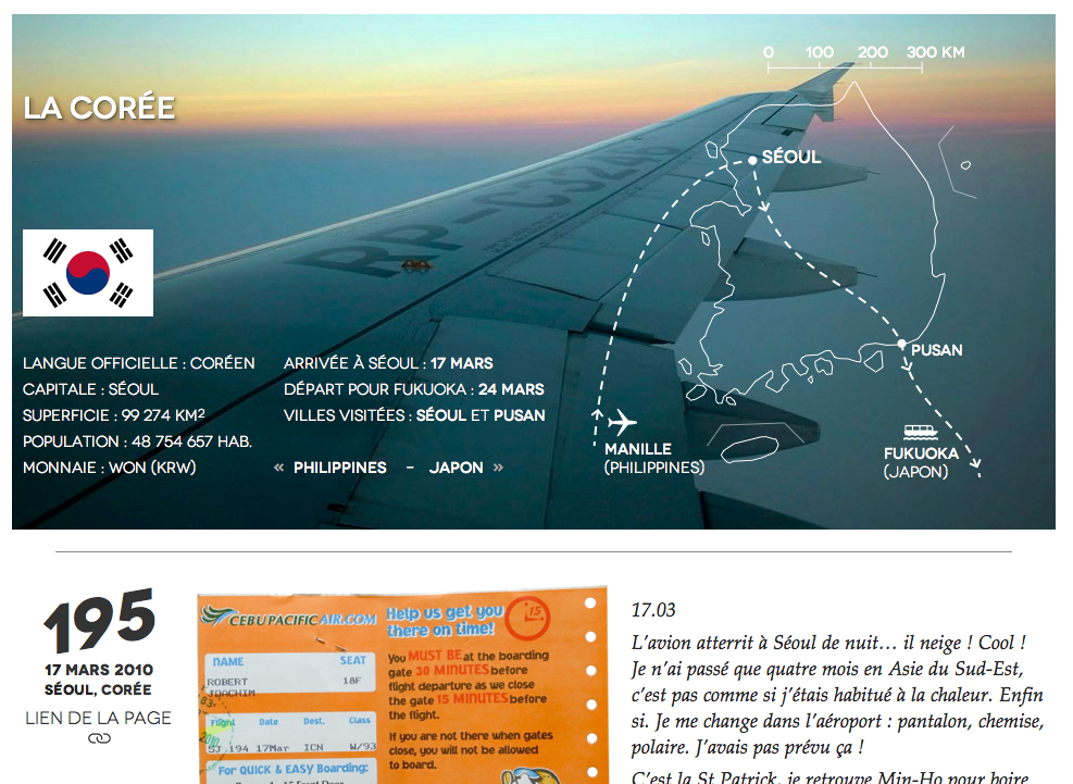 En 2013, j'ai travaillé plusieurs mois sur un projet de livre de voyages. 372 jours de matériau à compiler, des articles de blog, des pages de mon journal et de mes photos argentiques et numériques… Du contenu à organiser, mettre en page et présenter.