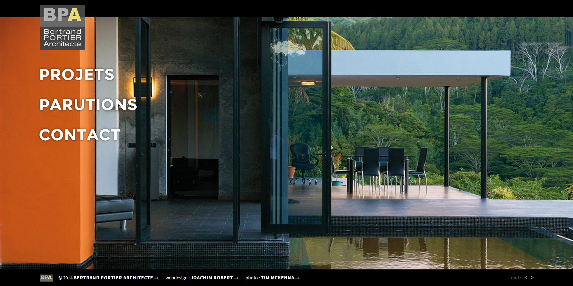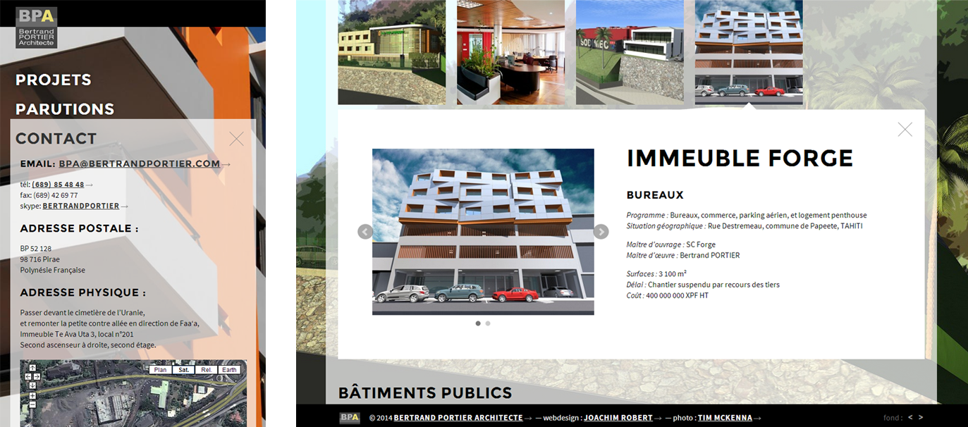 Réalisation graphique du site bertrandportier.com pour Bertrand Portier, architecte en Polynésie Française.