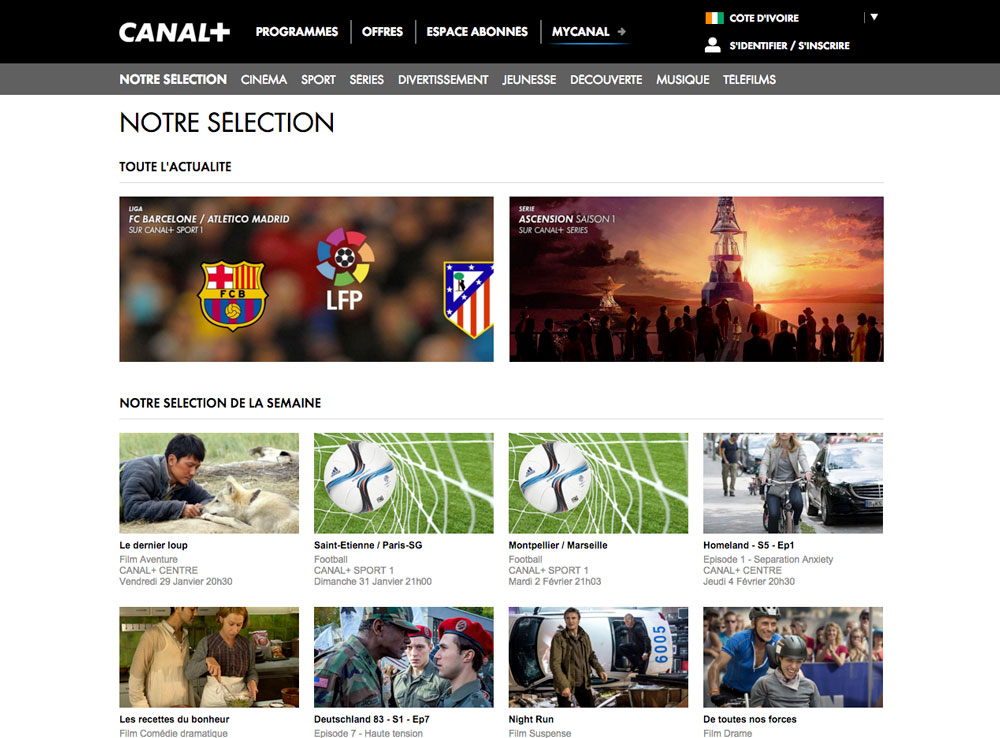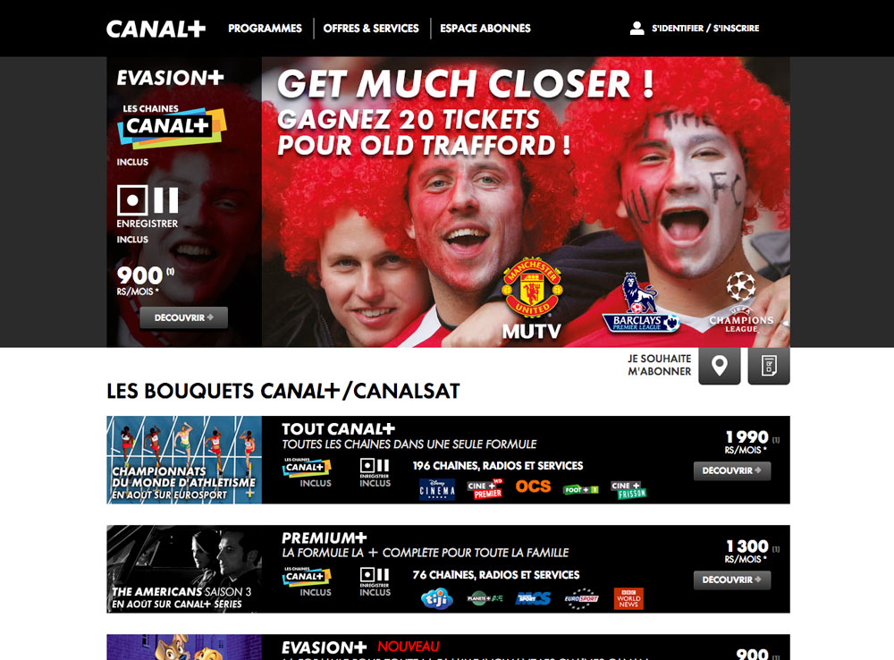 CANAL+, chaîne bien connue des amateurs de sports de balle et de cinéma, propose ses bouquets satellite aux quatre coins du monde via sa filiale CANAL+ Overseas. Jusqu'à 2017, les sites web étaient indépendants de la maison-mère, pour proposer des offres et des programmes spécifiques à ces zones.