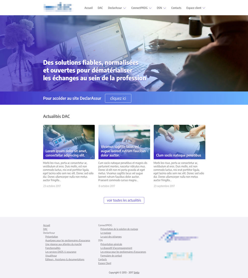 Maquettes site d'information métier