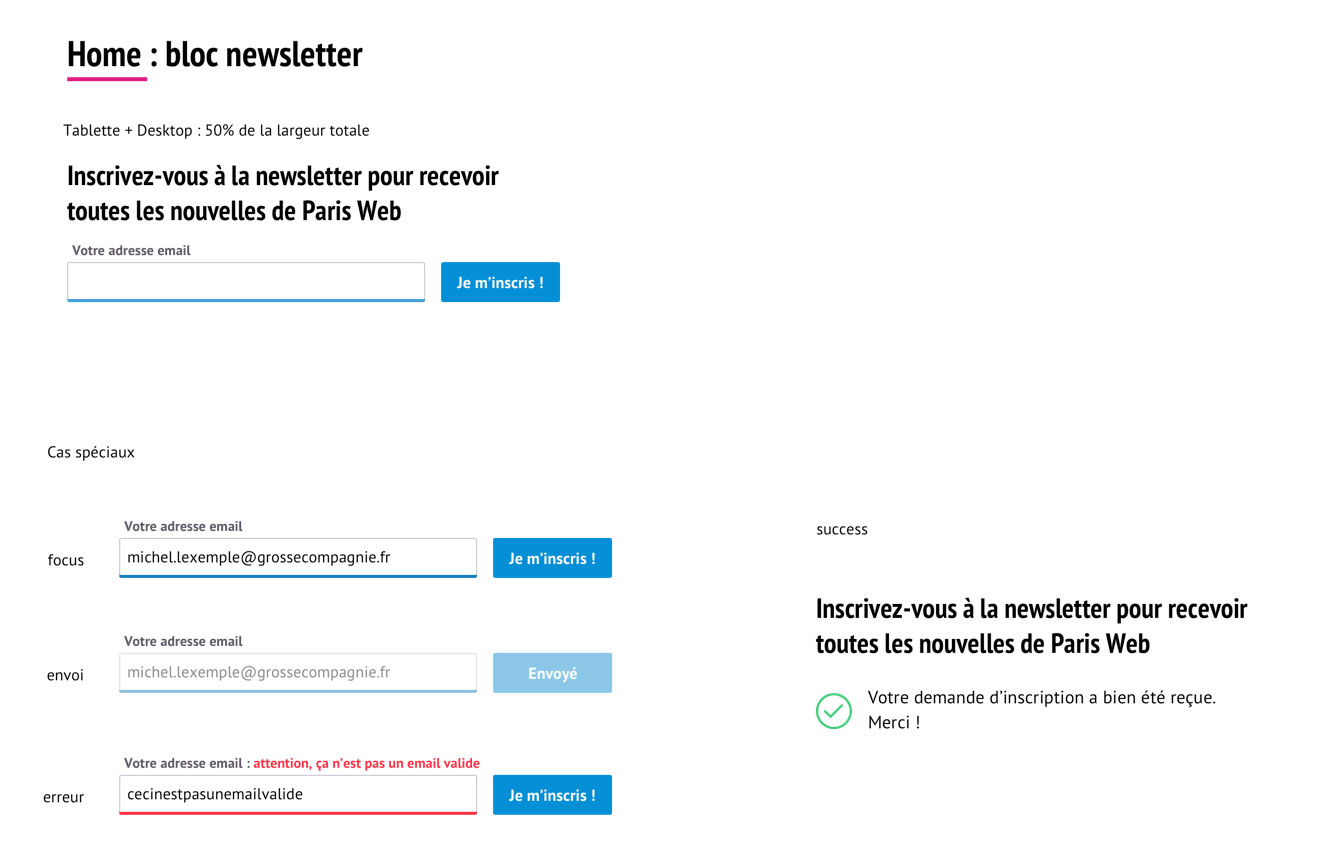 Le styleguide suit une logique de design atomique : les composants les plus petits sont articulés en modules, qui peuvent ensuite être utilisés pour établir des layouts complets. Ce mode de travail a pu faire gagner beaucoup de temps aux intégrateurs.
